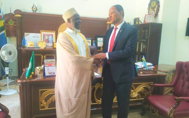 H.E. Ahmed Ibrahim, the Ambassador of the Republic of Sudan, has paid a courtesy visit to His Eminence Dr. Sheikh Shaban Ramadhan Mubaje, the Mufti of Uganda, at his office at the Uganda Muslim Supreme Council (UMSC) headquarters on Old Kampala Hill on Wednesday mid-morning, February 11, 2026.